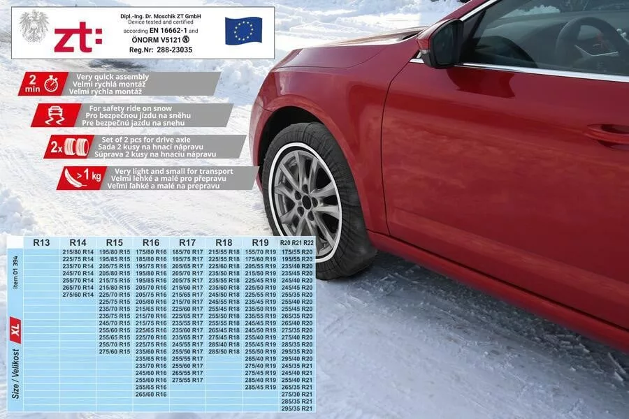 A textil hólánc megfelel az EN16662-1:2020 szabványnak. Ez azt jelenti, hogy az EU országaiban a klasszikus hólánc teljes értékű helyettesítőjeként használható.