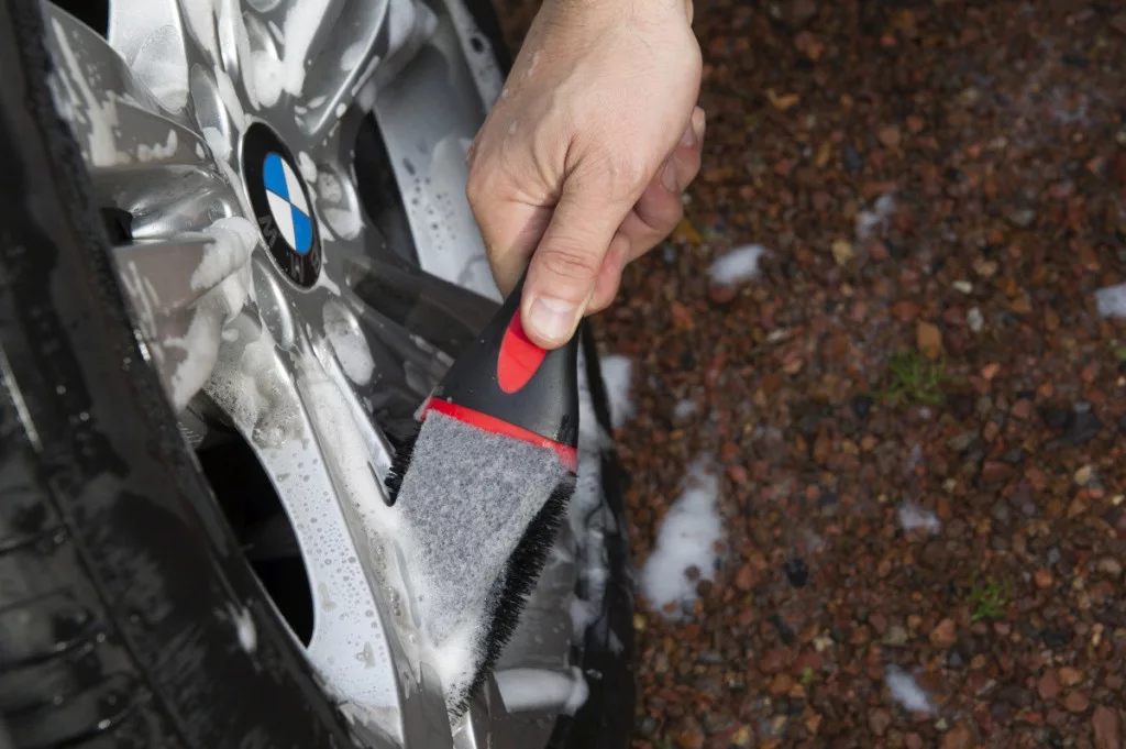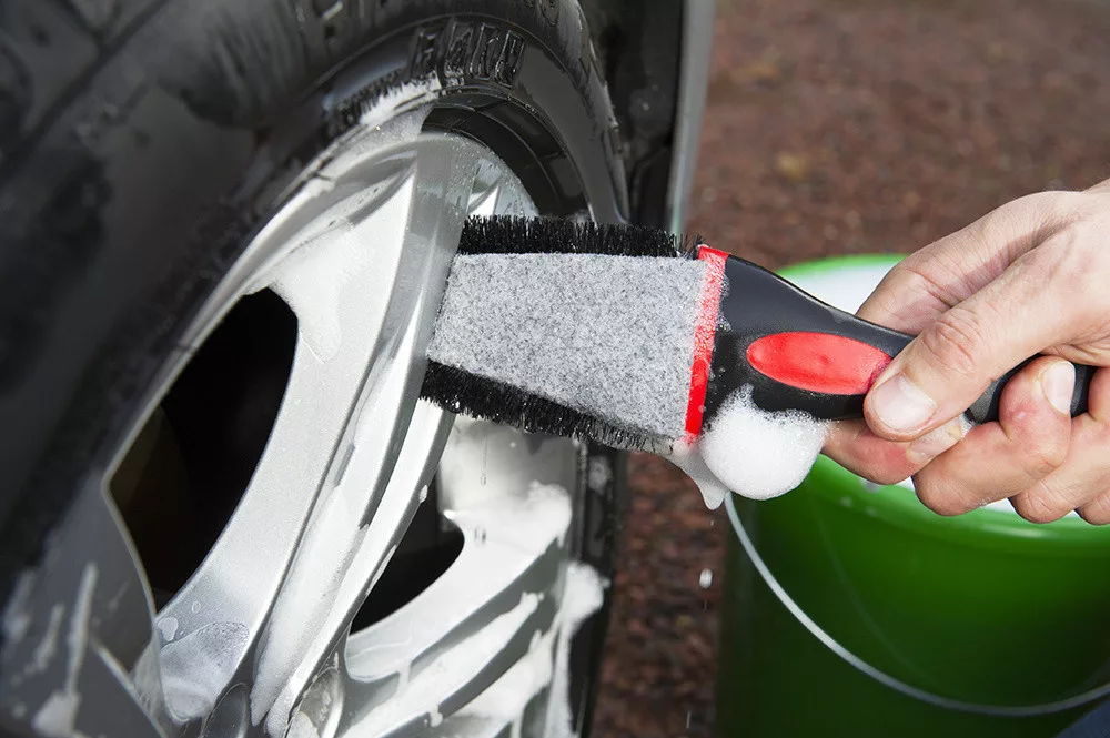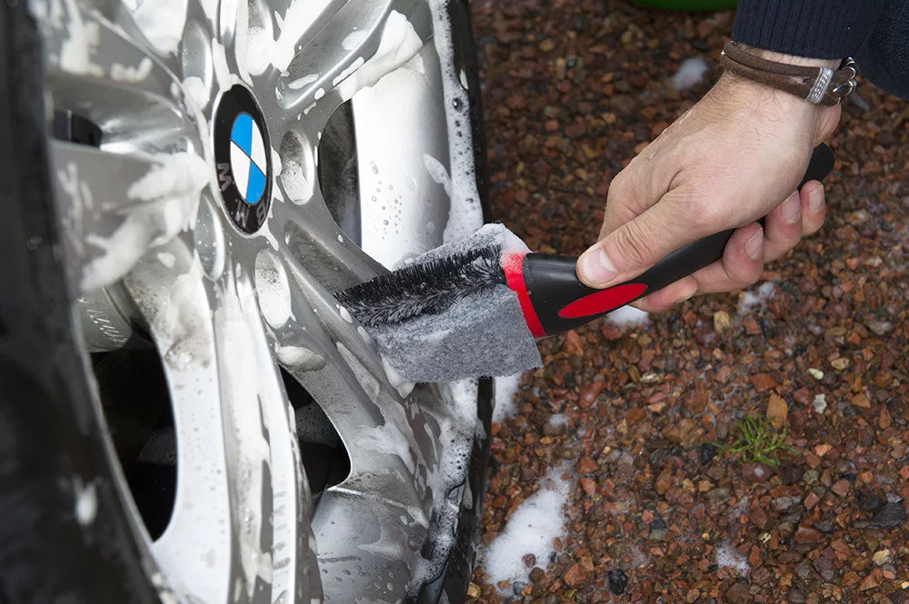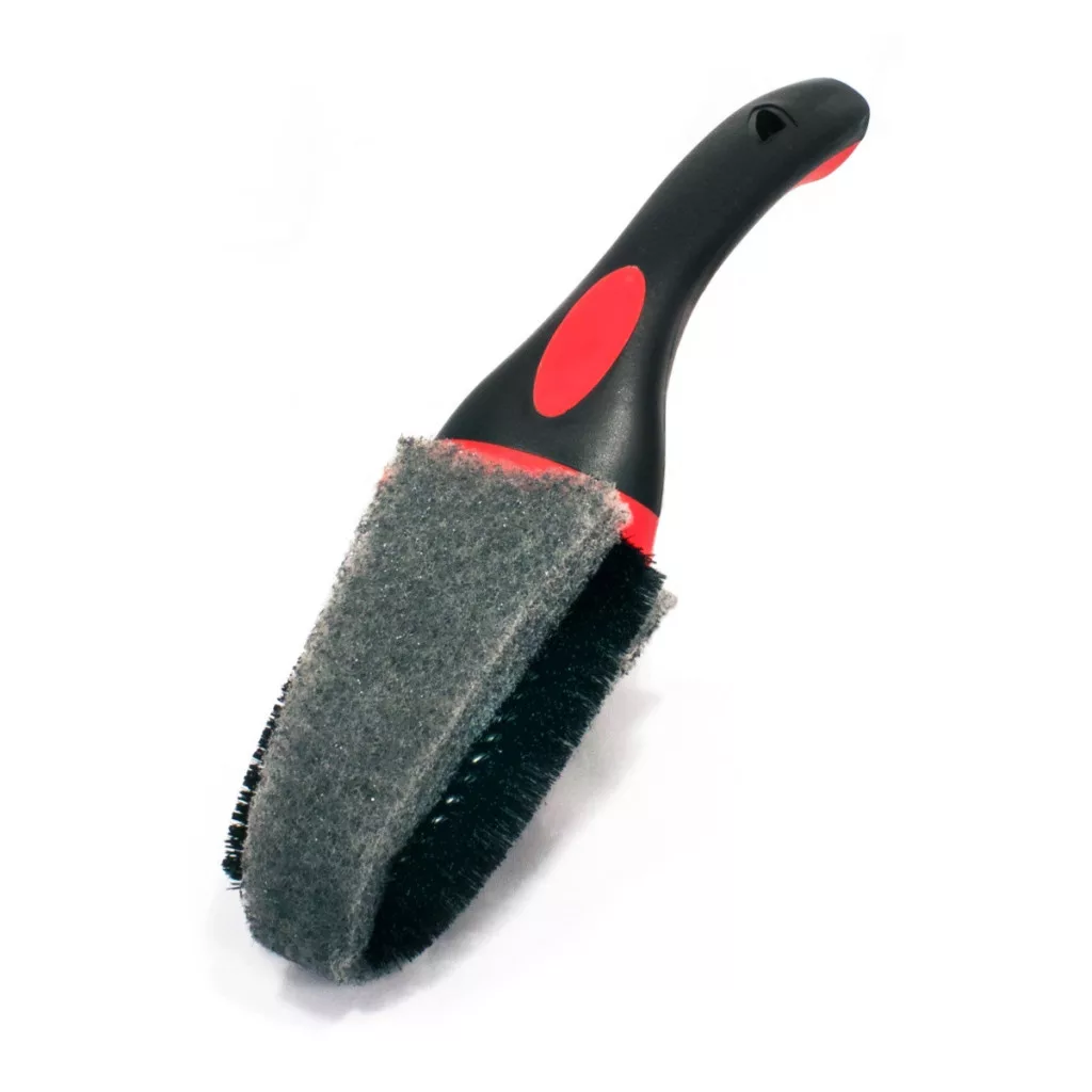 A keményebb sörték és a nylon textil (az ipari szőnyeghez hasonló anyag) megbízhatóan eltávolítják a fékpor-lerakódásokat és az útról származó szennyeződéseket.