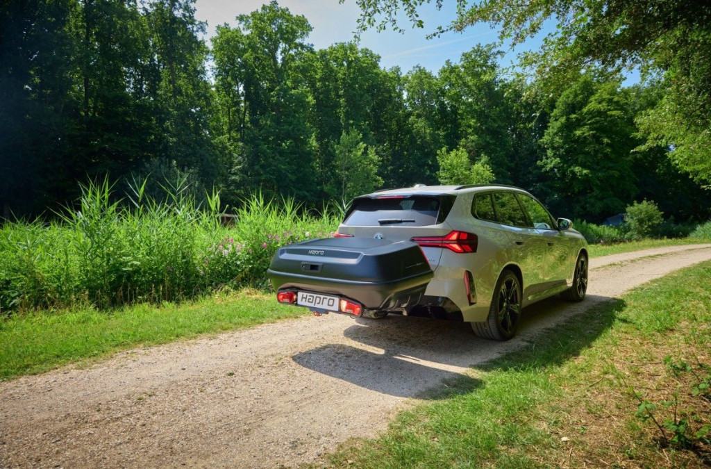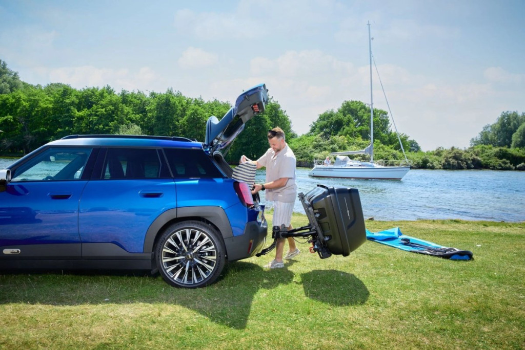 • A teljes egység lehajtható, így a csomagtér hozzáférhető marad – hasonlóan a modern kerékpártartókhoz.