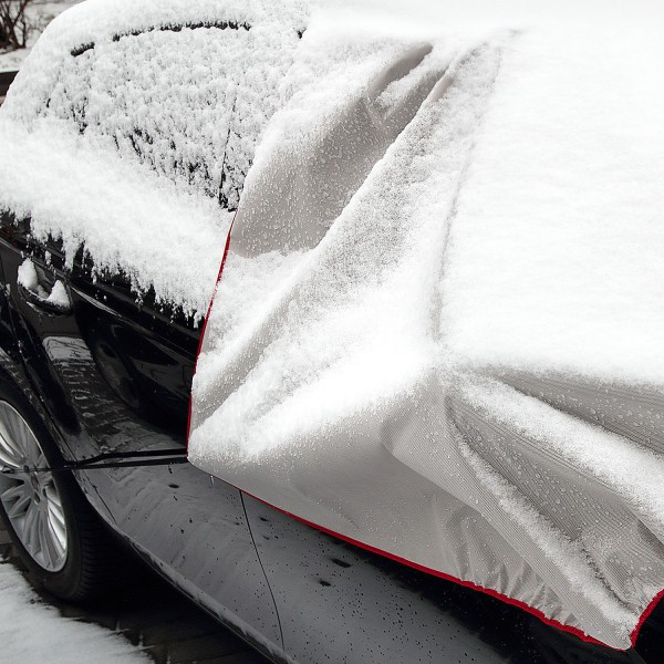 A takaró végei az első ajtók közé záródnak. Ajánlott a takarót az ablaktörlők alá is rögzíteni – így jobban tart, és az ablaktörlők sem fagynak rá az üvegre.