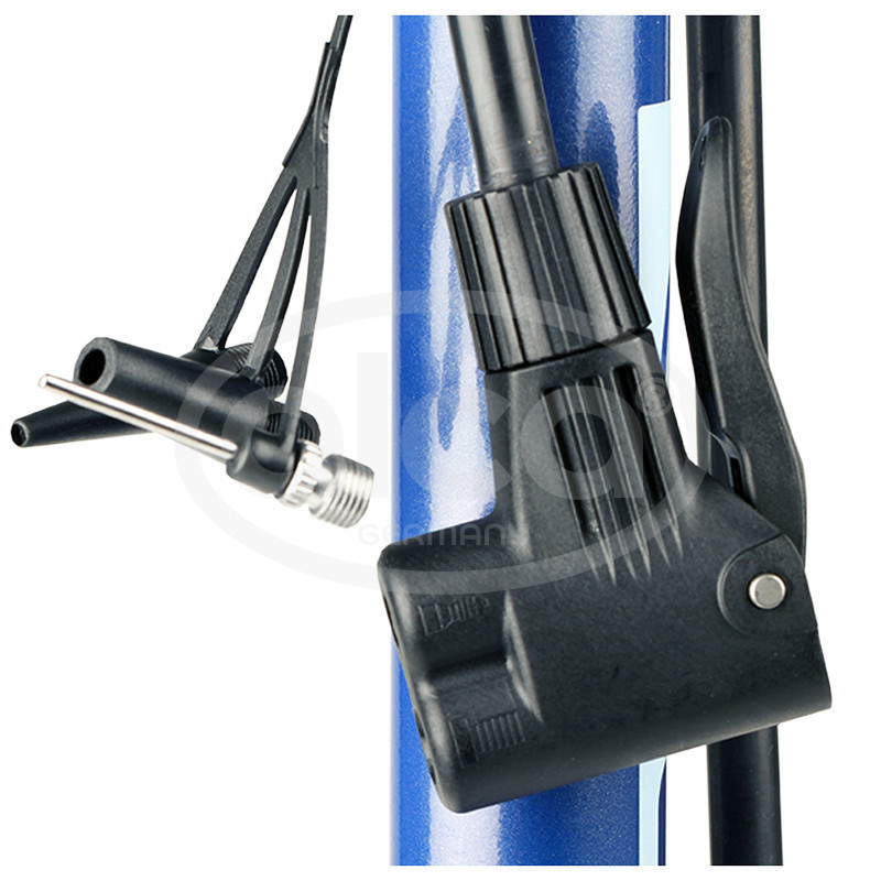 A 70 cm-es tömlő multifunkciós fejjel van ellátva, amely autós és kerékpárszelepekkel egyaránt kompatibilis, így nem szükséges átalakítás.