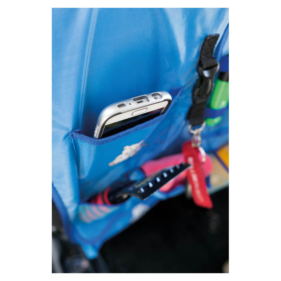 Ez a praktikus autós rendszerező számos tárolózsebének köszönhetően sokféle tárgy elhelyezésére alkalmas, és nagy teherbírással rendelkezik. Emellett hatékonyan védi az első ülések hátoldalát a szennyeződéstől és a cipőnyomoktól – különösen gyerekek esetében.