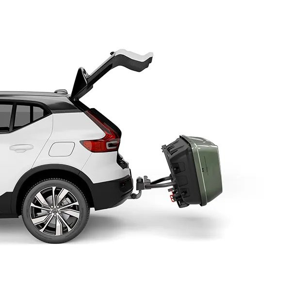 • A teljes egység lehajtható, így a csomagtér hozzáférhető marad – hasonlóan a modern kerékpártartókhoz.
