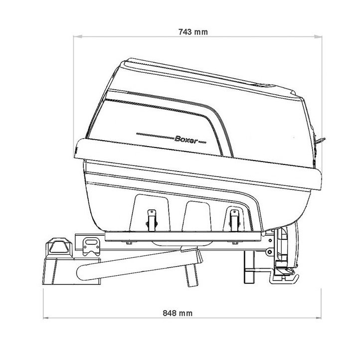 • A hordozó platform a vonóhorogra klasszikus karos rögzítőrendszerrel csatlakozik – ugyanazzal, mint a kerékpártartóknál.