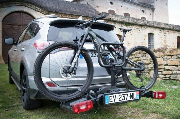 A tartó kiváló egyensúlyt biztosít még elektromos kerékpárok szállítása közben is, és lehajtva is elegendő helyet hagy a csomagtartóhoz való hozzáféréshez.