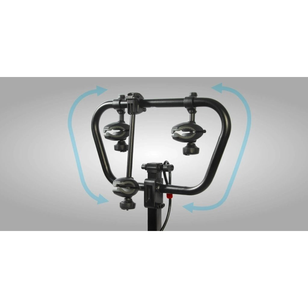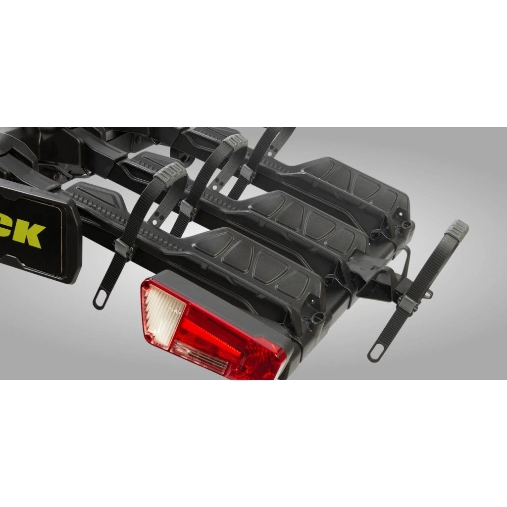 A tartó egy pedál lenyomásával könnyen lehajtható, így a csomagtartó akkor is hozzáférhető, ha a kerékpárok már rögzítve vannak.