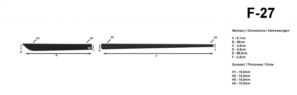 Az ajtóvédő díszlécek megbízhatóan védik a gépkocsi ajtaját a kopástól. Fröccsöntési technológiával készülnek poliuretánból, és nem tartalmaznak korróziót okozó fémelemeket.
